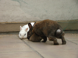 Ik was van plan hen in het weekend op neutraal terrein te koppelen maar mijn eigenwijze konijnen hadden andere plannen. :)
